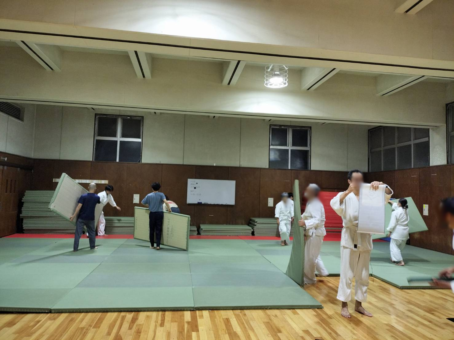 7/10、前々日まで猛烈な暑さだったのに、急に10℃ほど気温が下がりました。稽古直前に雨が降り始めたせいもあってか、道場内はだいぶ蒸し暑くなりました。道着を着ただけで汗が噴き出るようななかで、6名で両手取りの稽古をしました。