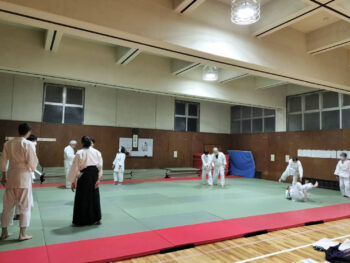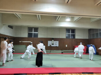 さらに、実際の三教に入る前に、まずは三教投げをやることで手の取り方を学んでもらいました。ここまででまあまあ時間がかかったので、そのまま呼吸投げを二種類。寒くなってきた中でもよい汗をかけたようです。